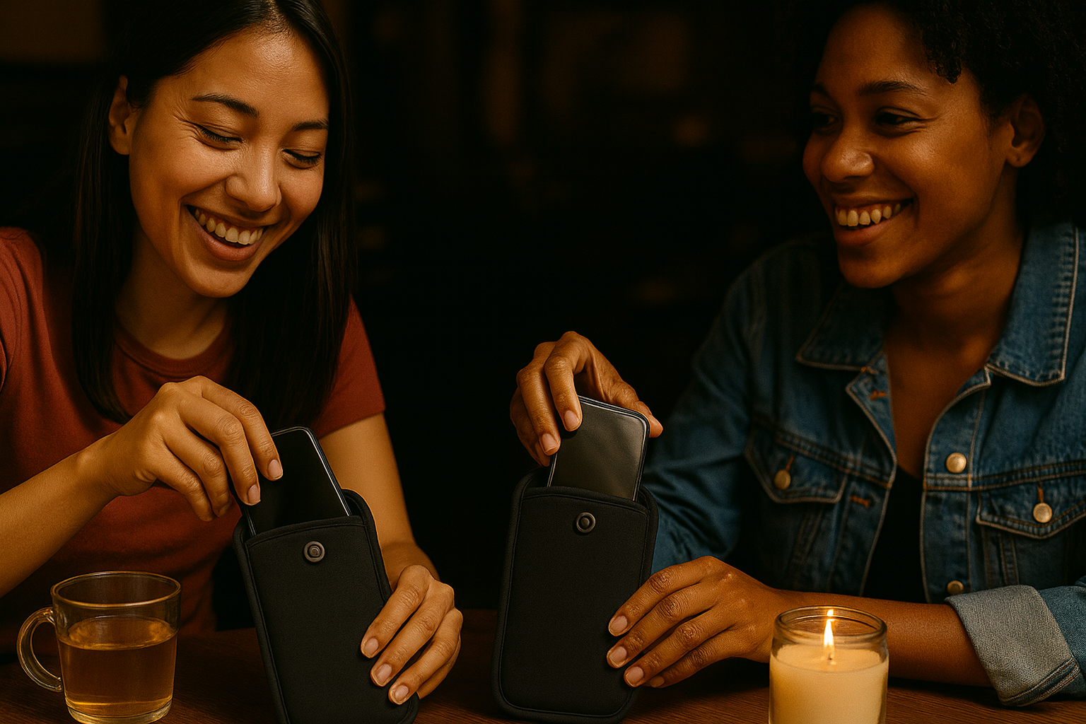 Der magnetische Handybeutel für echte Gespräche und ruhige Abende.